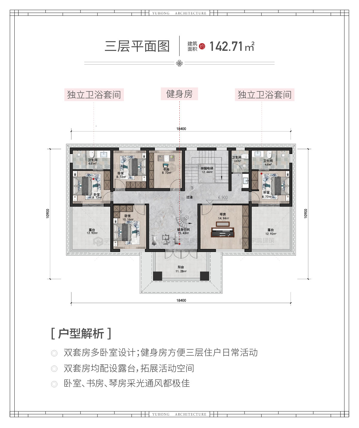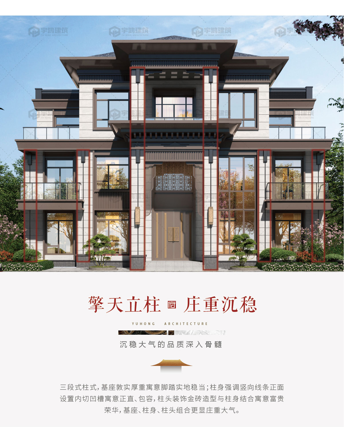新款大氣中式農村三層別墅設計圖紙及效果圖