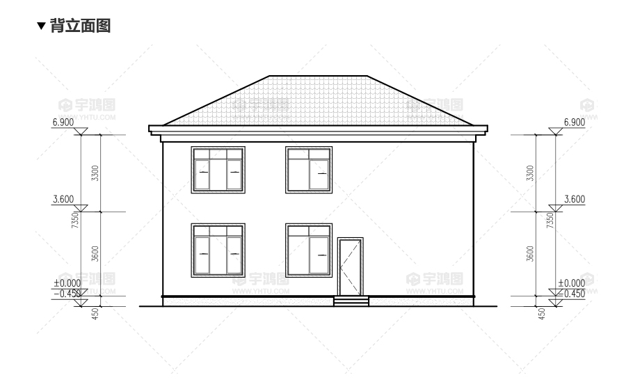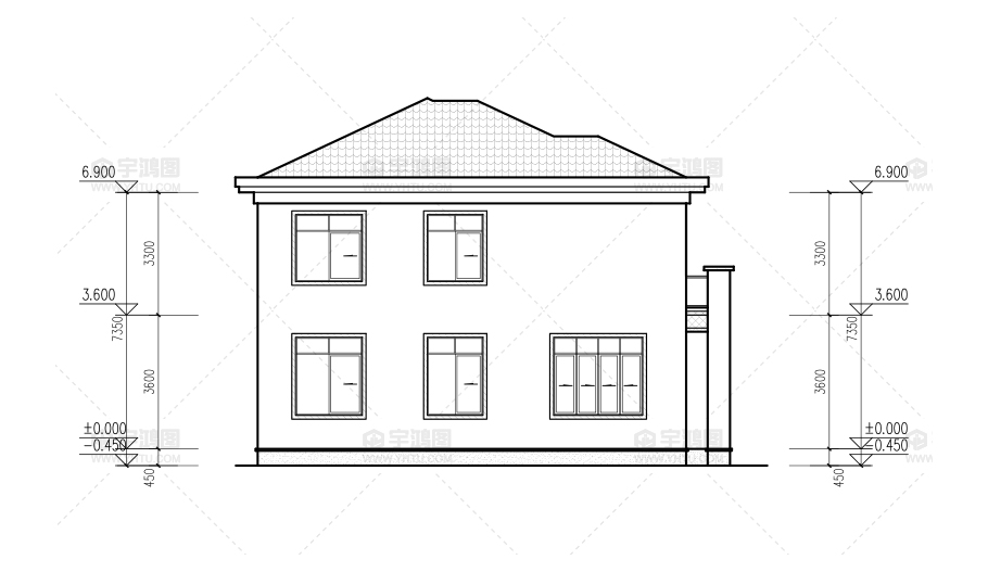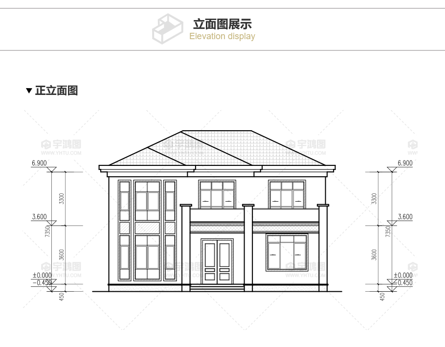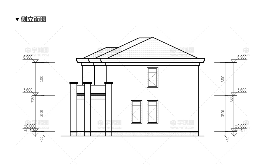 建筑立面圖:東立面圖,西立面圖,南立面圖,北立面圖,剖面圖;