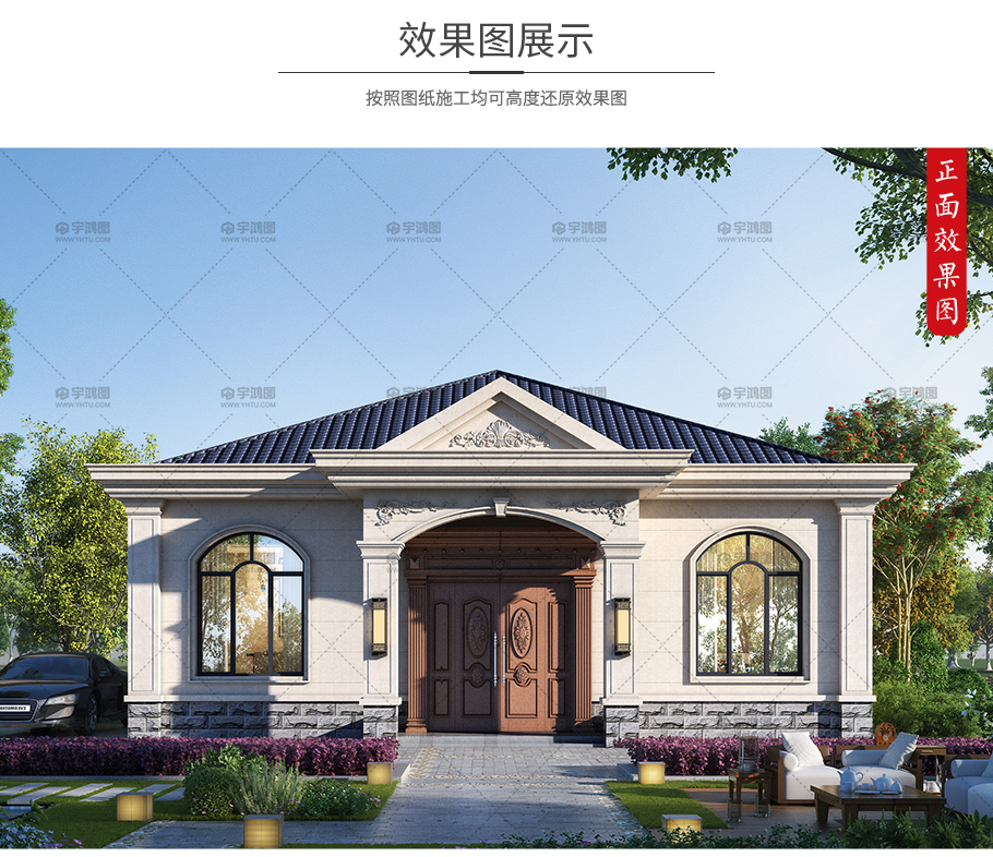 成品圖紙>150平一層宜居歐式自建房設(shè)計(jì)圖紙
