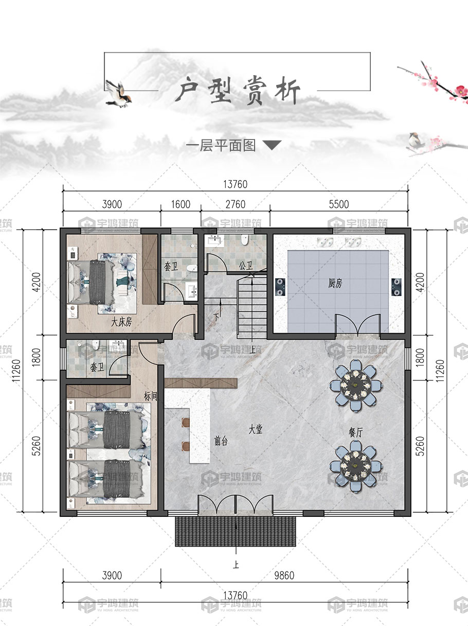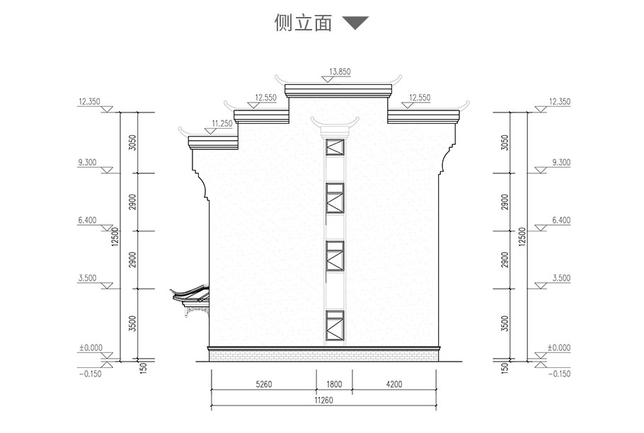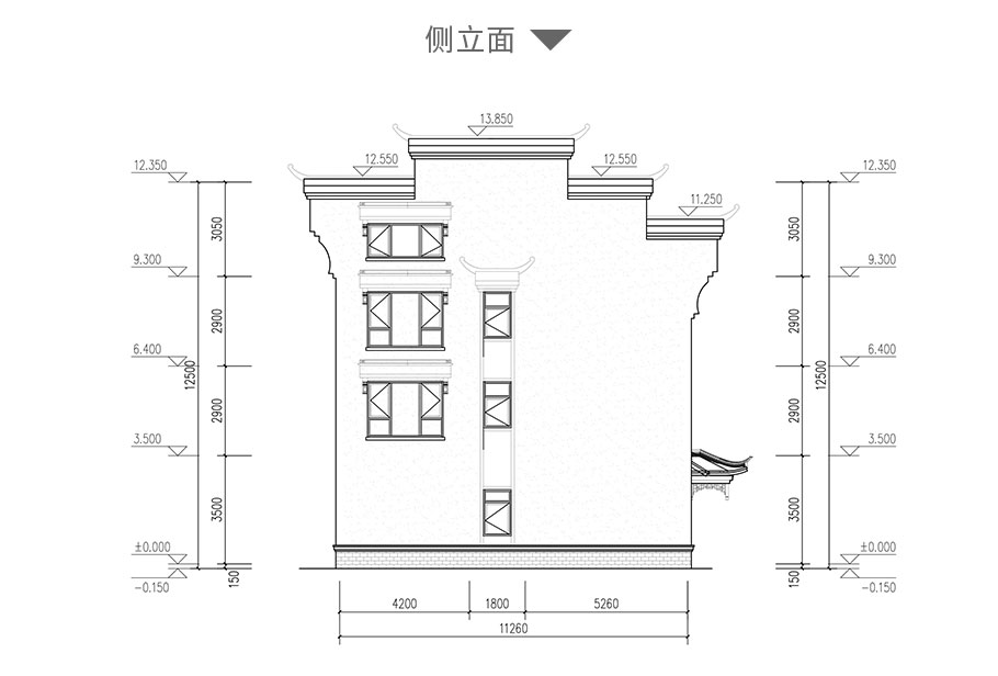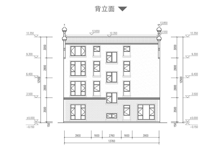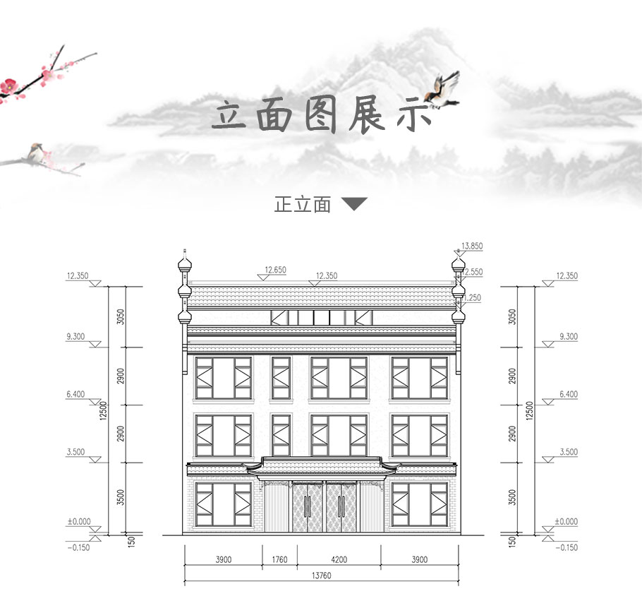 開間:13.7米 進深:11.2米 占地面積:161平方米 建筑面積:570平方米