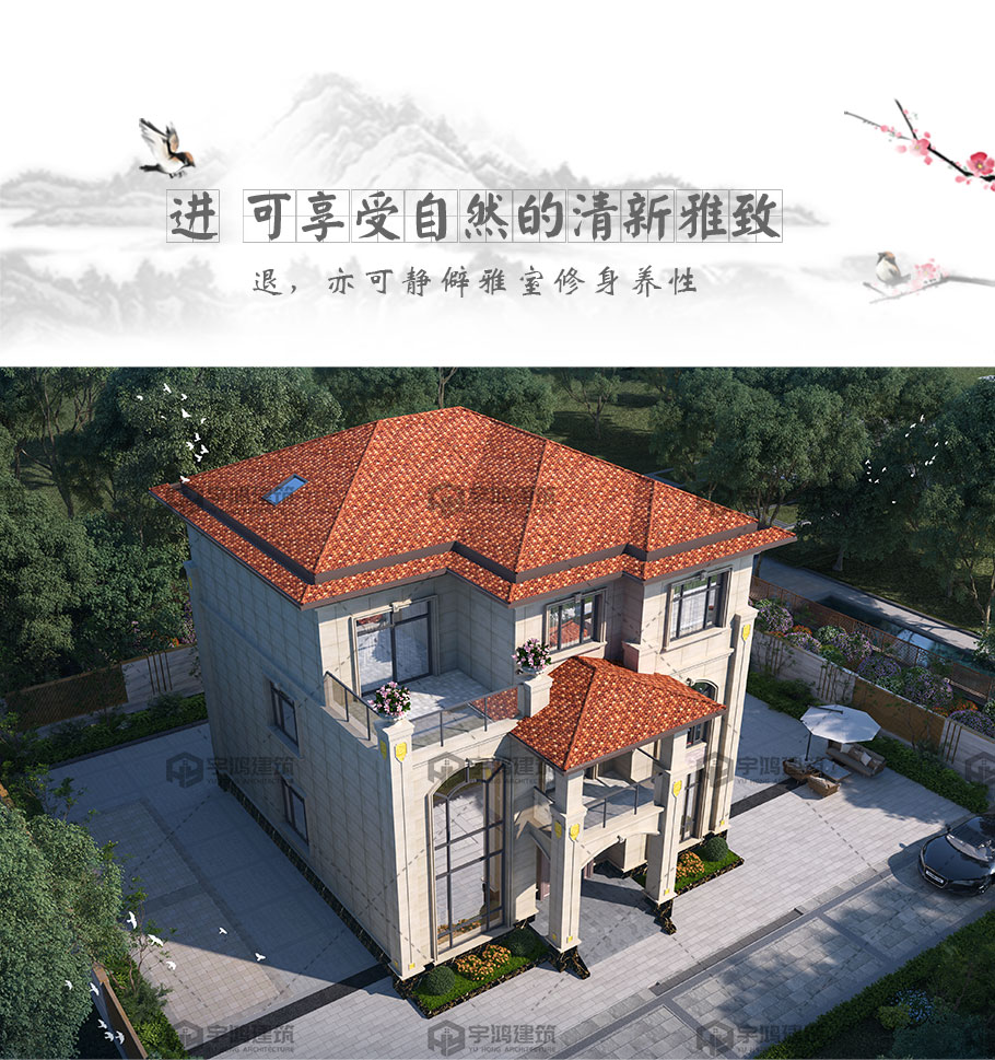 框架結(jié)構(gòu)新中式別墅設(shè)計(jì)占地150平三層設(shè)計(jì)圖紙