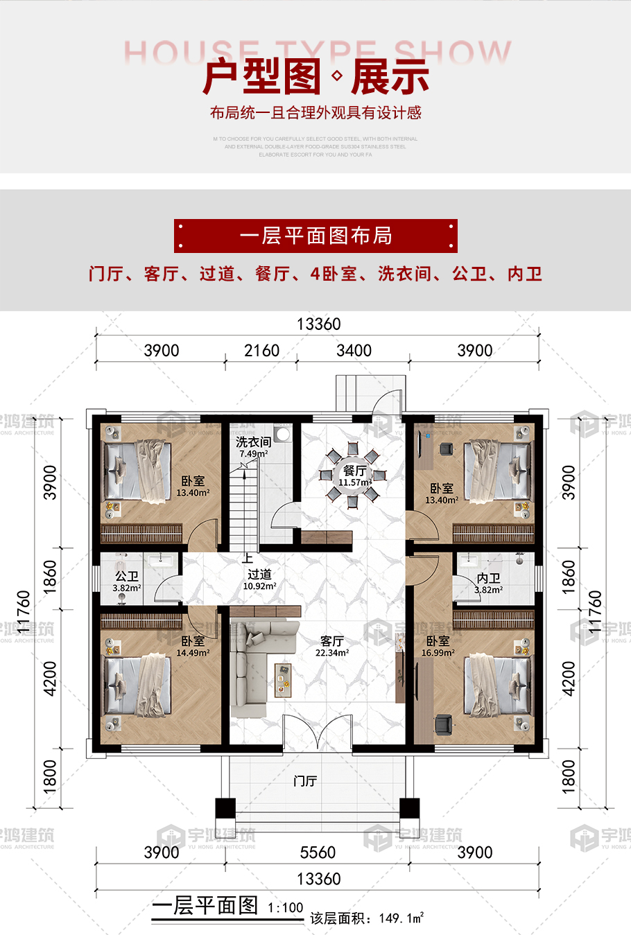 歐式磚混結(jié)構(gòu)占地149平別墅設(shè)計(jì)圖紙