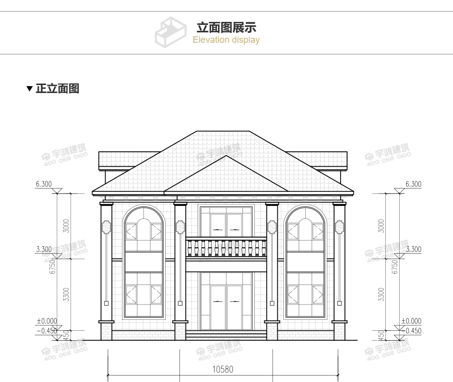 | 風格:簡歐 | 層數:二層 | 結構形式:磚混結構 | 圖紙編號:YH-A-2058 |